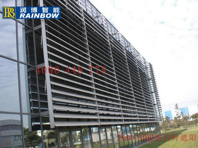 電動梭形百葉遮陽葉片呈梭形(又名魚腹形),雙弧面,造型優(yōu)美,具高科技感,葉片截面大且為中空結(jié)構(gòu),強(qiáng)度高,符合外墻百葉韌度及延展性要求,適合大跨度使用,能起到保護(hù)玻璃幕墻的作用;